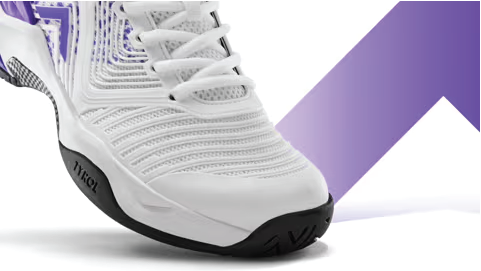 Equipped with Tyrol’s Torsional Control Shank to provide lateral stability working in unison with the exterior Heel Counter to prevent ankle rollover in the quick side to side movement of Pickleball.